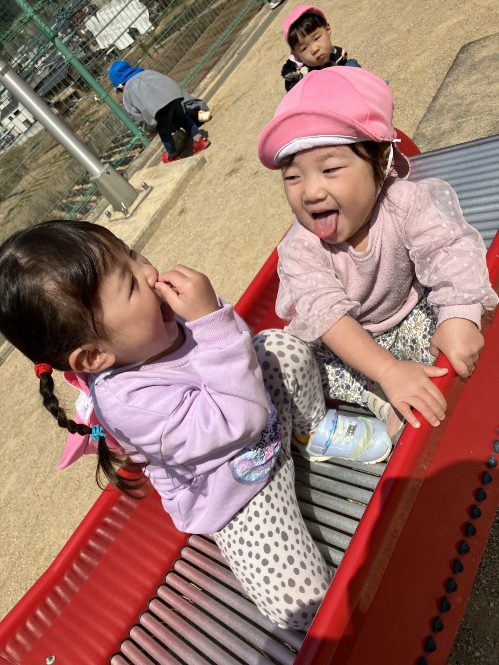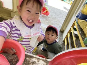 フォトアルバム 2025.06.102025.12.05未満児(ばぶばぶ・ぴよぴよ) 桜の前ではいチーズ📷✨ 砂遊び楽しいね♡ みんなでゴロン♬未満児(ひよこ) カタツムリに釘付け✨ すべり台楽しいね♬ みんなでおさんぽにしゅっぱーつ‼年少(りす) 虫探し!! いいものみーつけた🎵 パトカーと一緒に📷✨年中(きりん) 桜がきれいだったよ🌸 おいしいキュウリになーれ🥒 交通安全教室‼🚥年長(らいおん) 大きなこいのぼりをみんなで作ったよ🎵 遠足に行ったよ‼✨ ニンジンを植えたよ🥕