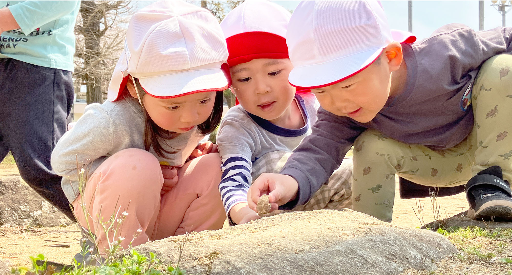 - 身近な自然を生かし、戸外にでて思いっきり体を動かして遊べるようにします。