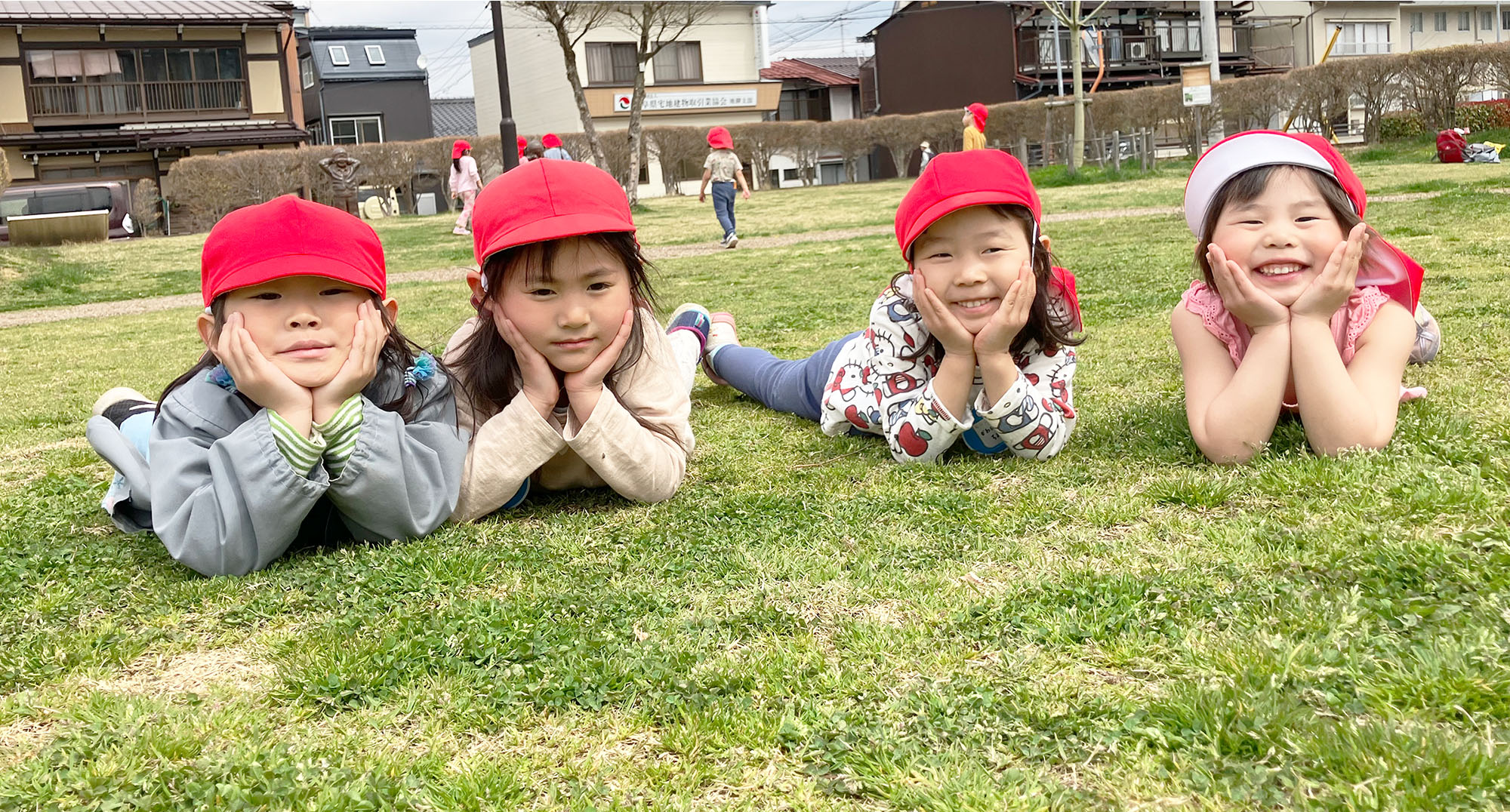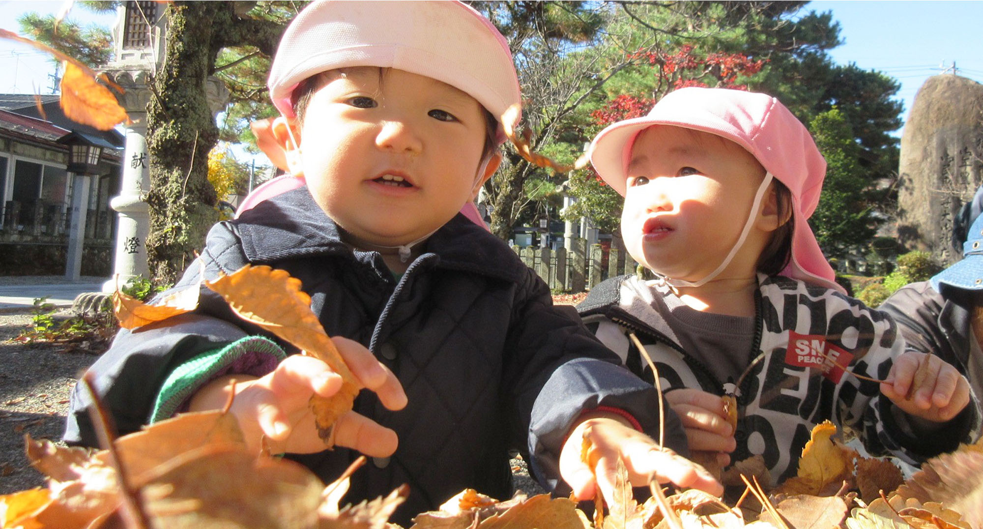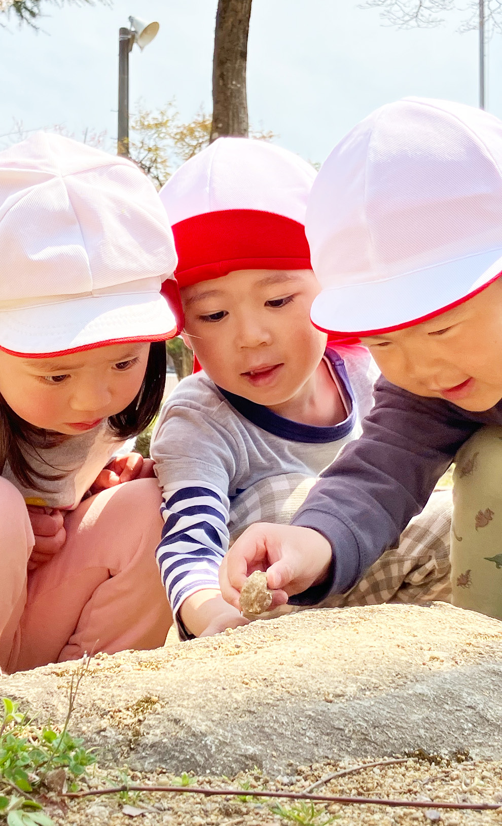- 身近な自然を生かし、戸外にでて思いっきり体を動かして遊べるようにします。